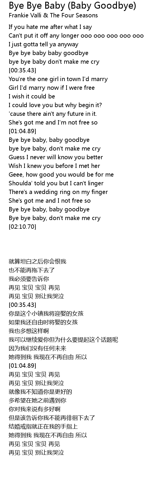 Bye bye baby baby goodbye |