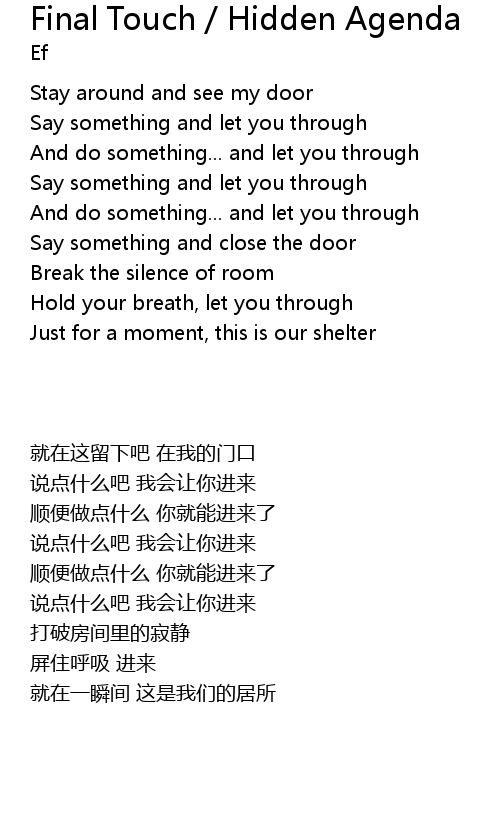 | [06:02.000] | Say something and let you through |