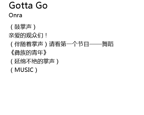| [00:06] | (伴随着掌声)请看第一个节目——舞蹈 |