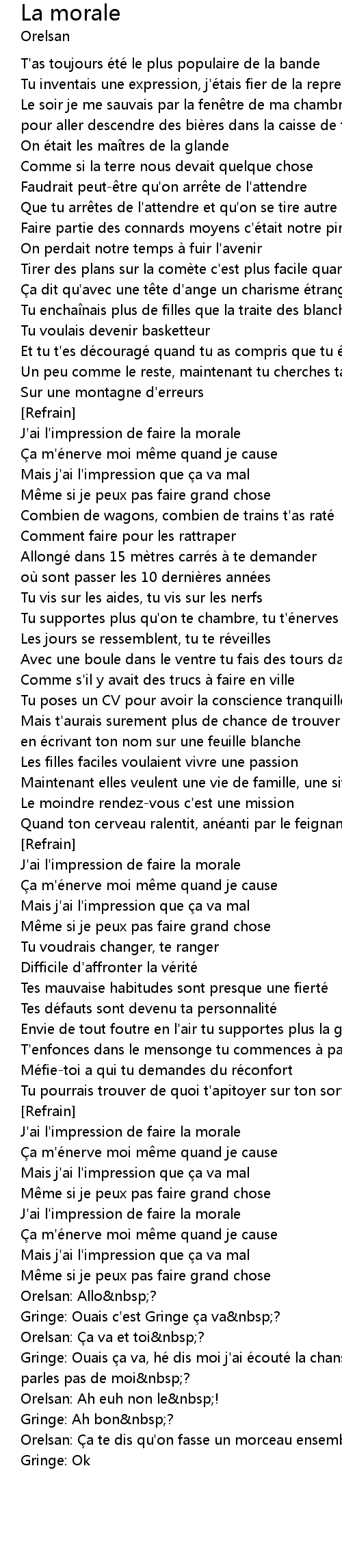 | Gringe: Ouais a va, hé dis moi j' ai é couté la chanson d' avant là, tu parles pas de moi nbsp? | |