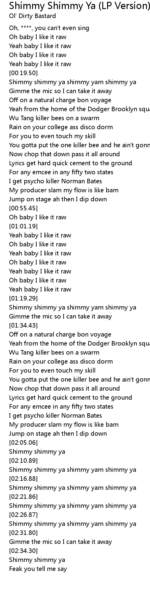Shimmy shimmy ya shimmy yam shimmy ya |