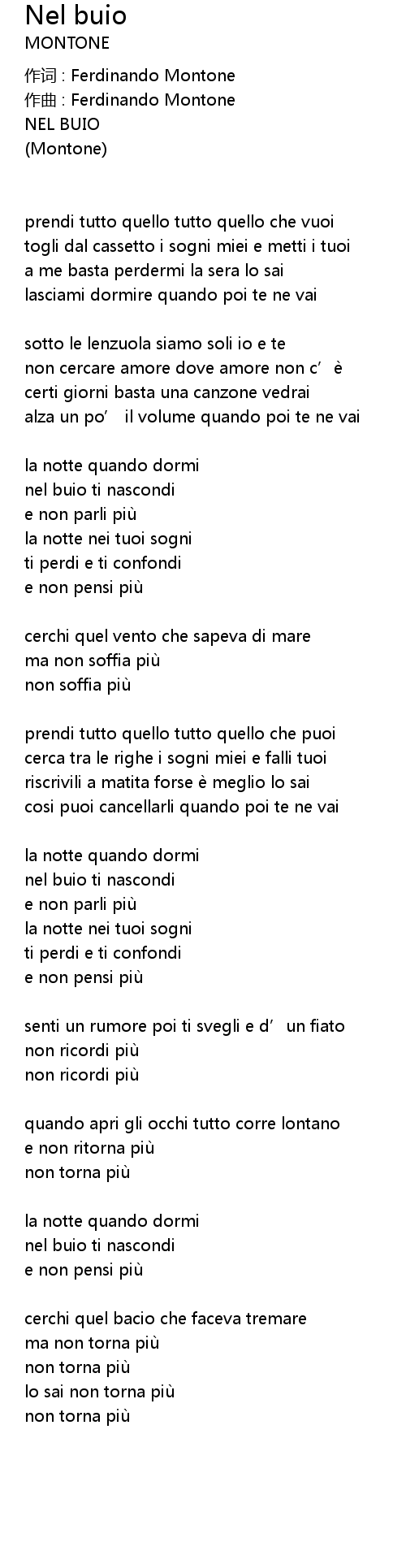 Nel buio Lyrics