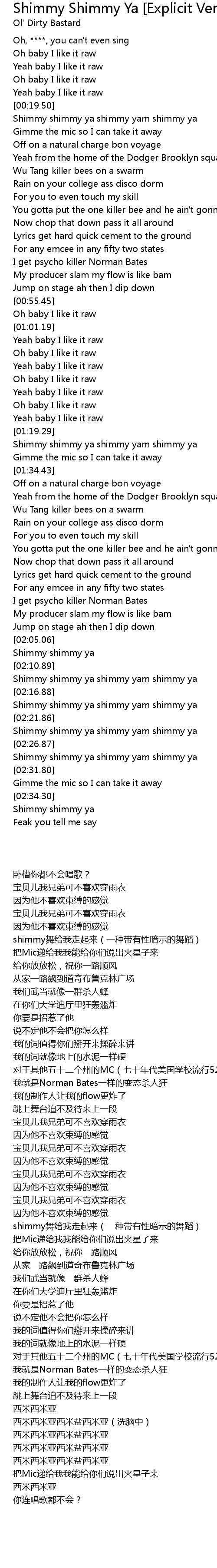 Shimmy shimmy ya shimmy yam shimmy ya |