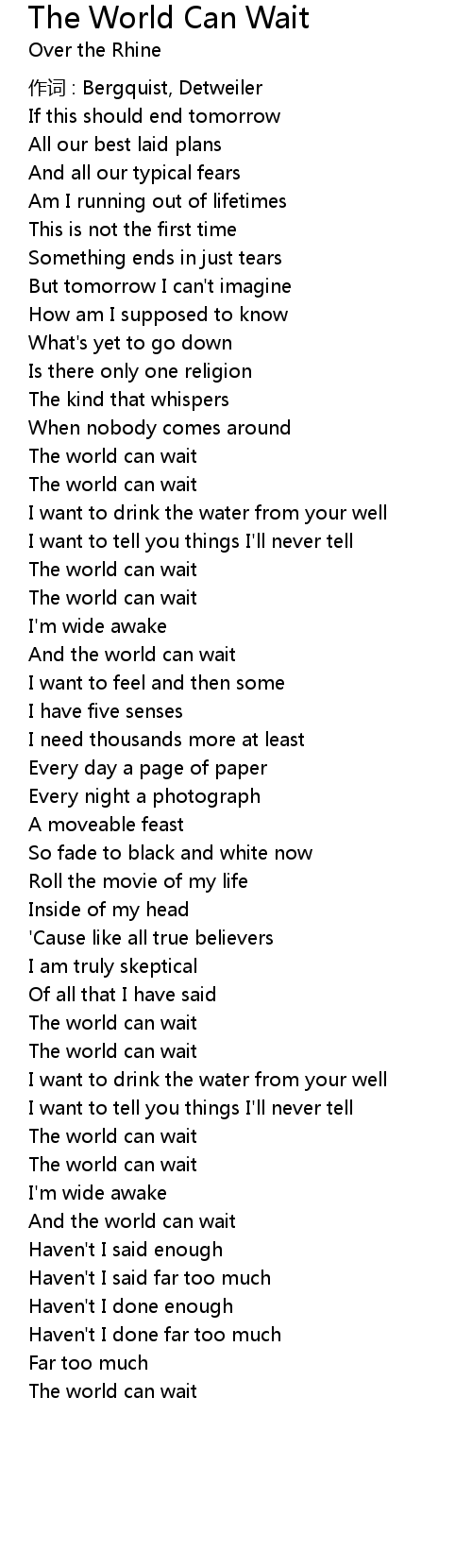 | And the world can wait | |