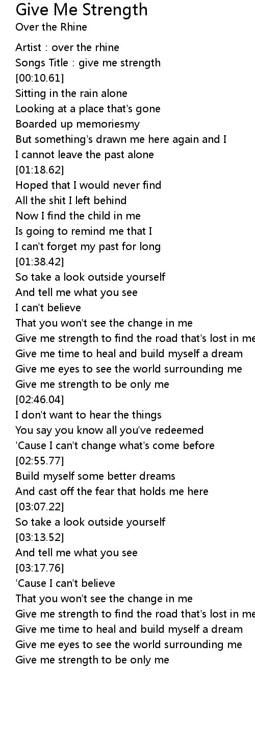 | [02:01.91] | Give me strength to find the road that' s lost in me |