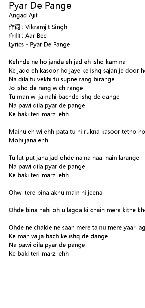 | Lyrics - Pyar De Pange | |