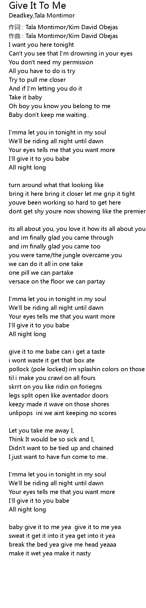 | baby give it to me yea give it to me yea | |