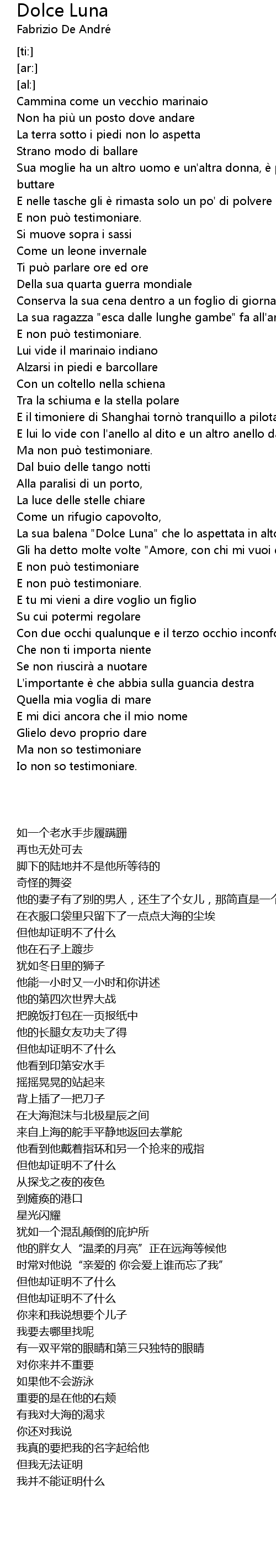 | [01:41.34] | La sua balena "Dolce Luna" che lo aspettata in alto mare, |