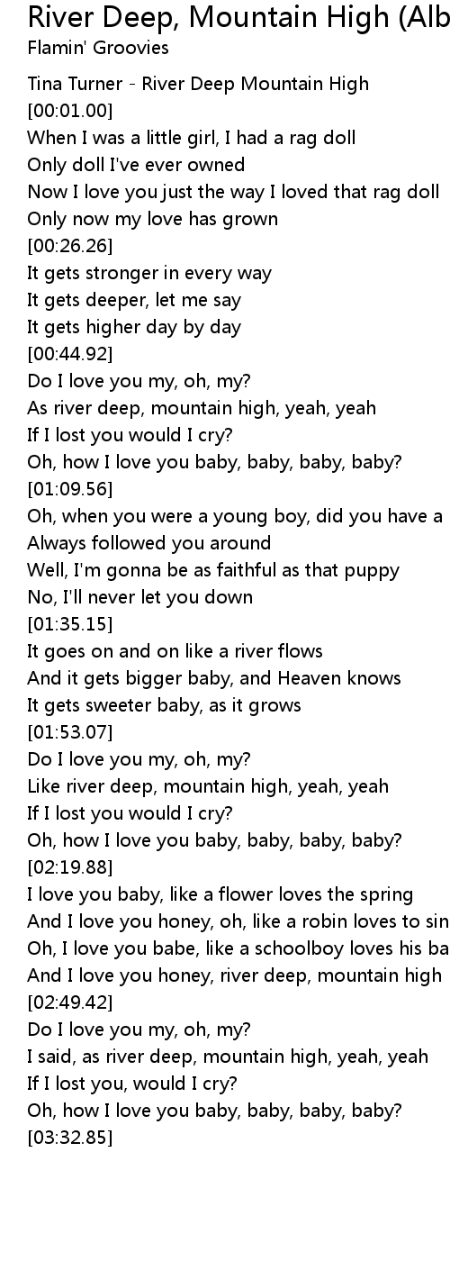And I love you honey, river deep, mountain high |