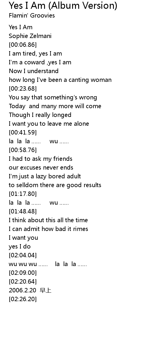 | [00:02.73] | Yes I Am |