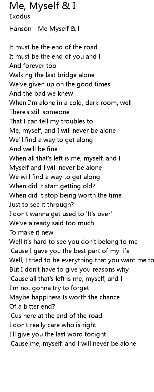'Cause me, myself, and I will never be alone |