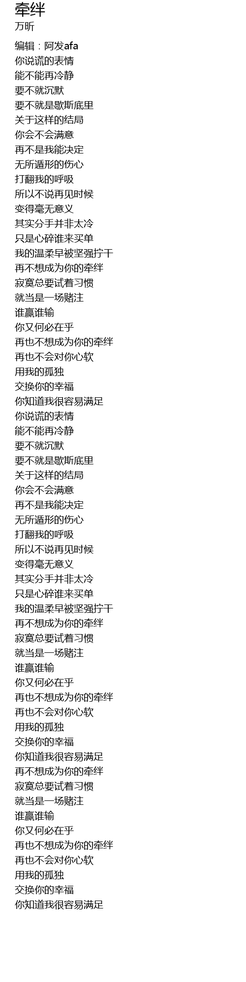 | [03:56.33] | 再也不想成为你的牵绊 |
