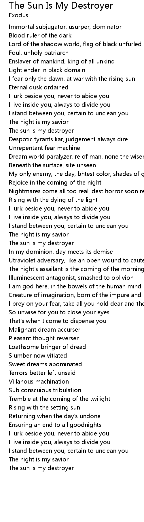 The sun is my destroyer |