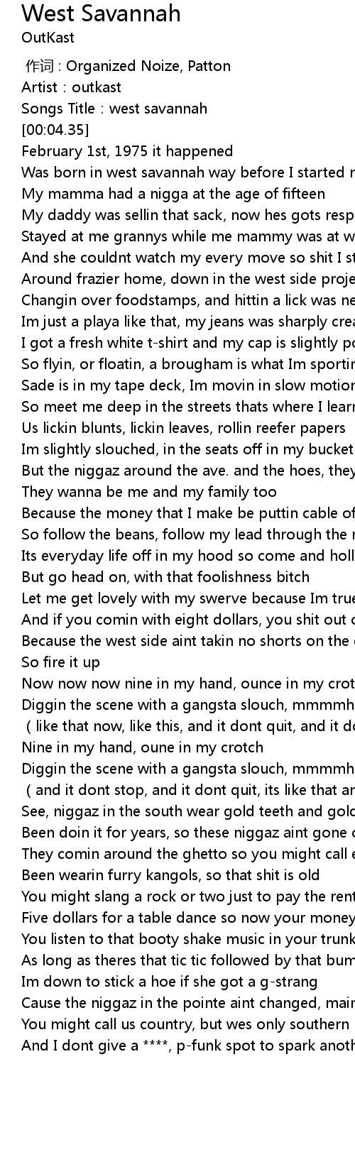 | [00:25.76] | Was born in west savannah way before I started rappin |