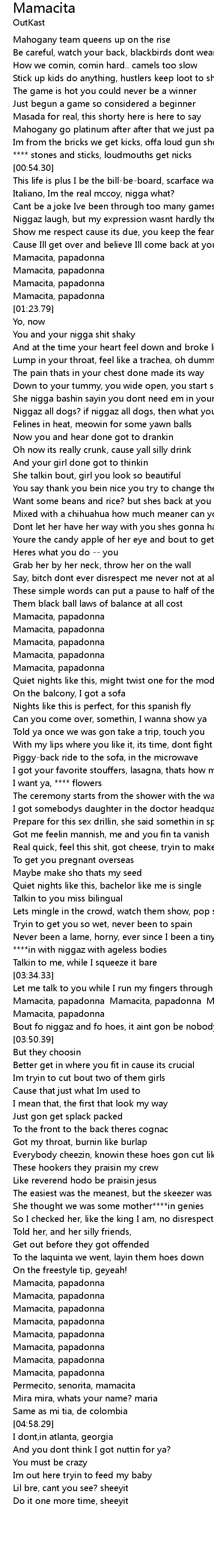 | [03:38.65] | Mamacita, papadonna Mamacita, papadonna Mamacita, papadonna Mamacita, papadonna |