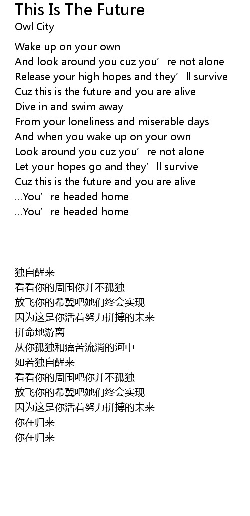 | [00:57.140] | Cuz this is the future and you are alive |