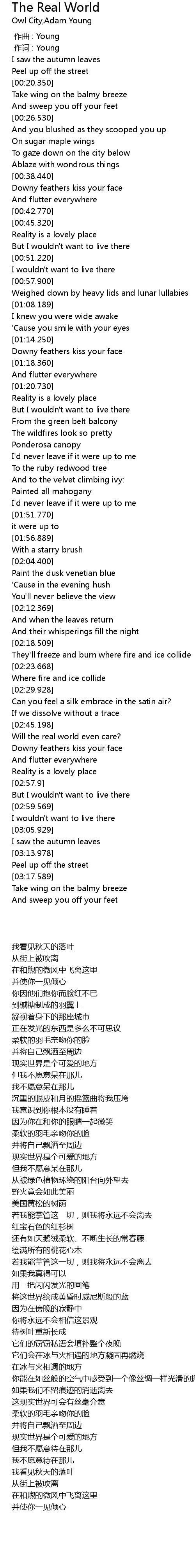 | [00:01.00] | 作词 : Young |