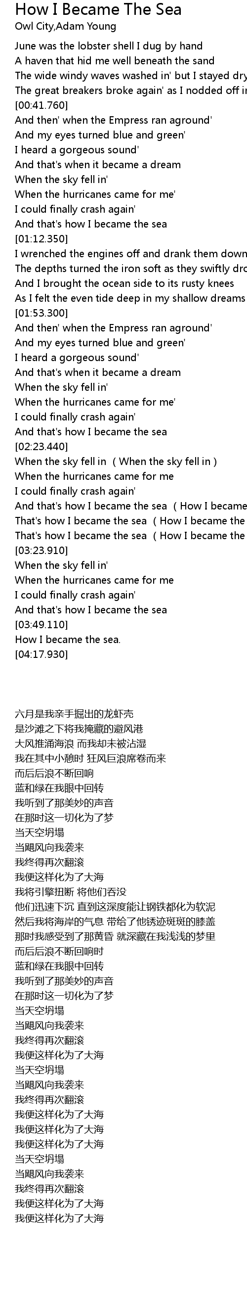 | [03:16.880] | That' s how I became the sea How I became the sea... |