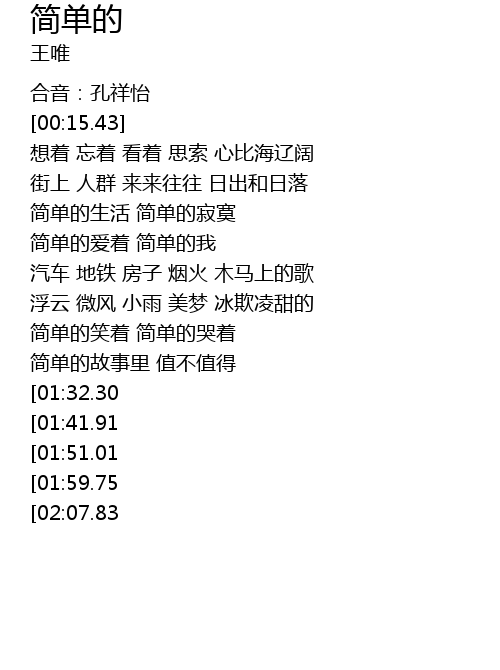 | [01:14.15] | jiǎn dān de xiào zhe jiǎn dān de kū zhe |