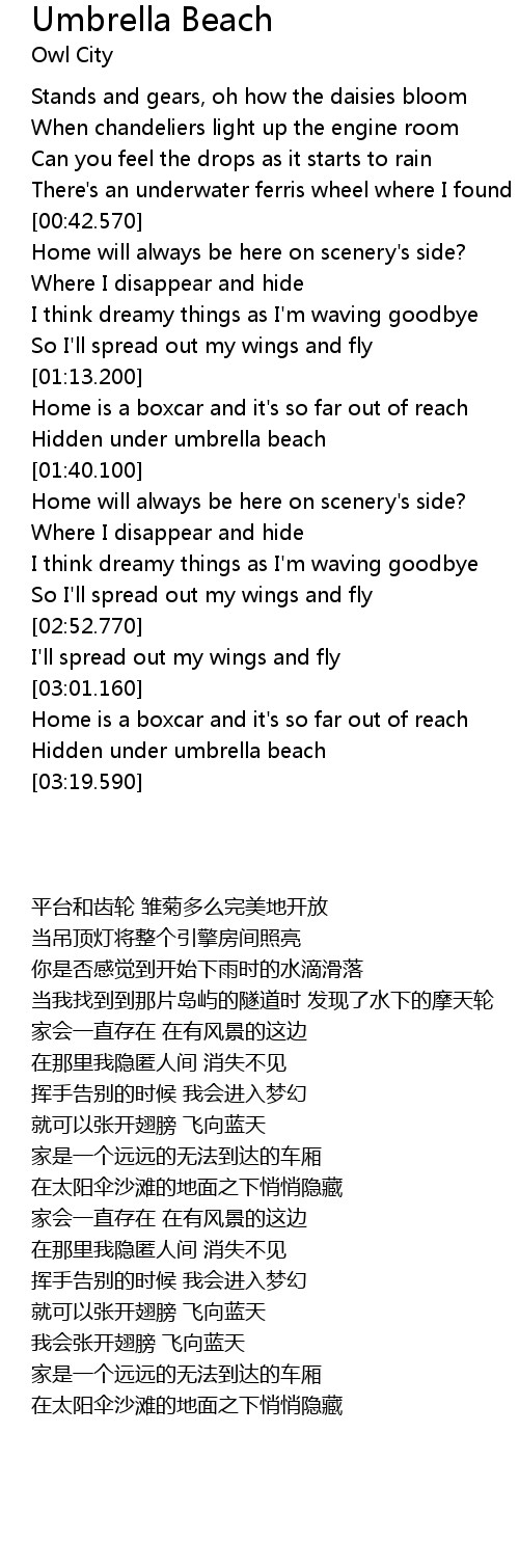 | [00:43.100] | Home will always be here on scenery' s side? |