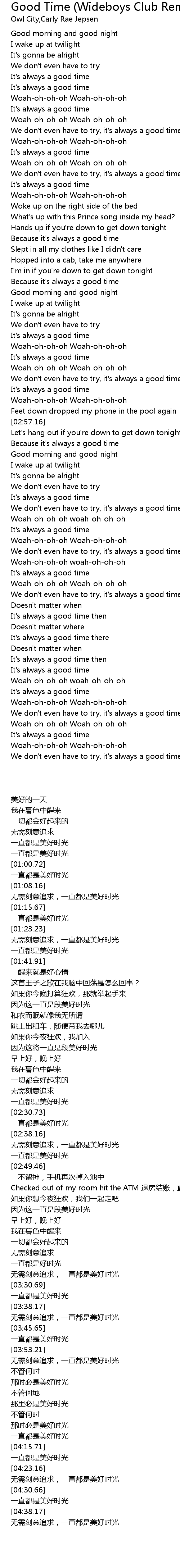 | [01:06.50] | It's always a good time |