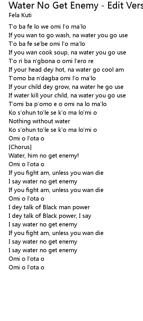 Water No Get Enemy - Edit Version Lyrics