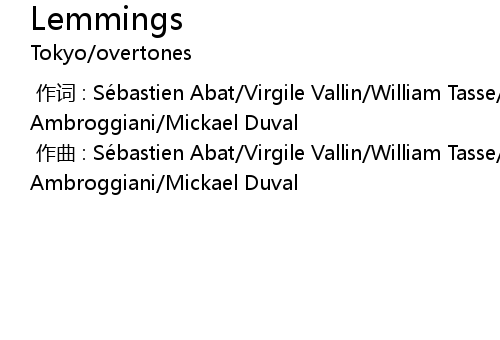 | [00:00.000] | 作词 : Sébastien Abat/Virgile Vallin/William Tasse/Laurent Ambroggiani/Mickael Duval |