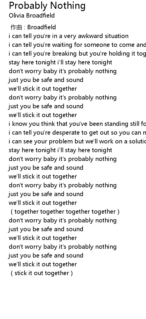 | [01:35.530] | don' t worry baby it' s probably nothing |