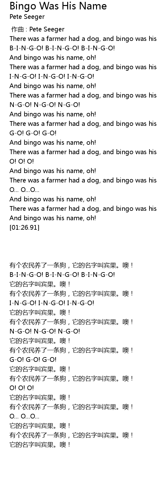 | [00:07.46] | B-I-N-G-O! B-I-N-G-O! B-I-N-G-O! |