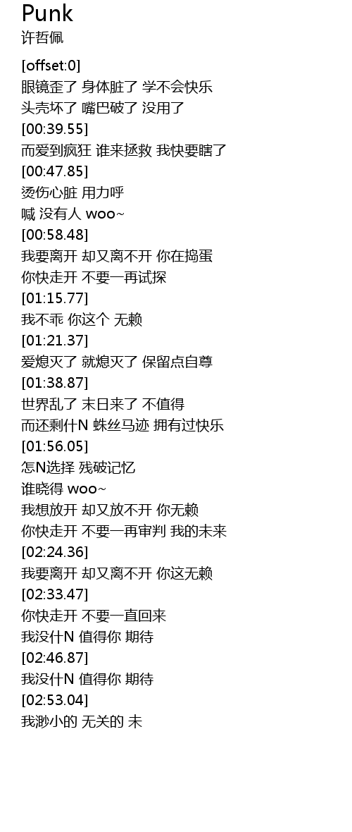 | [02:16.64] | 你快走开 不要一再审判 我的未来 |