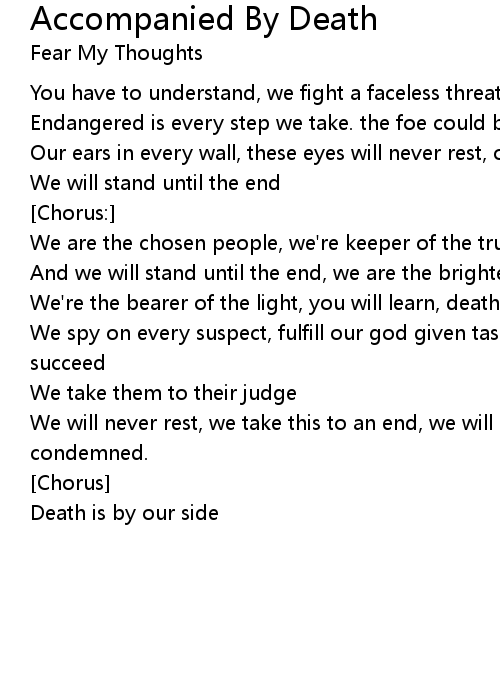 We're the bearer of the light, you will learn, death is by our side. |