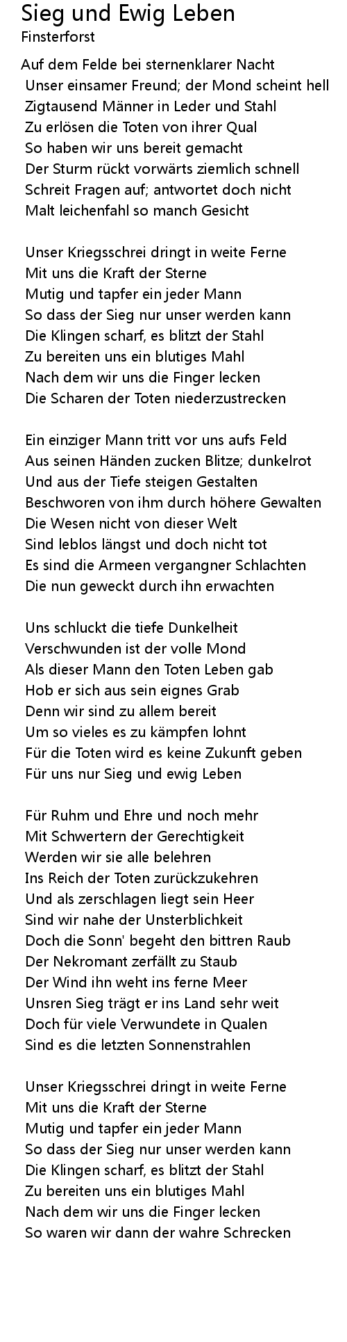 | Song | Sieg und Ewig Leben |