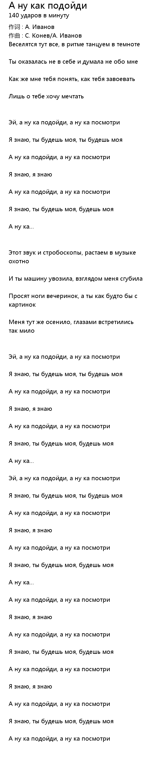 Эй, а ну ка подойди, а ну ка посмотри |