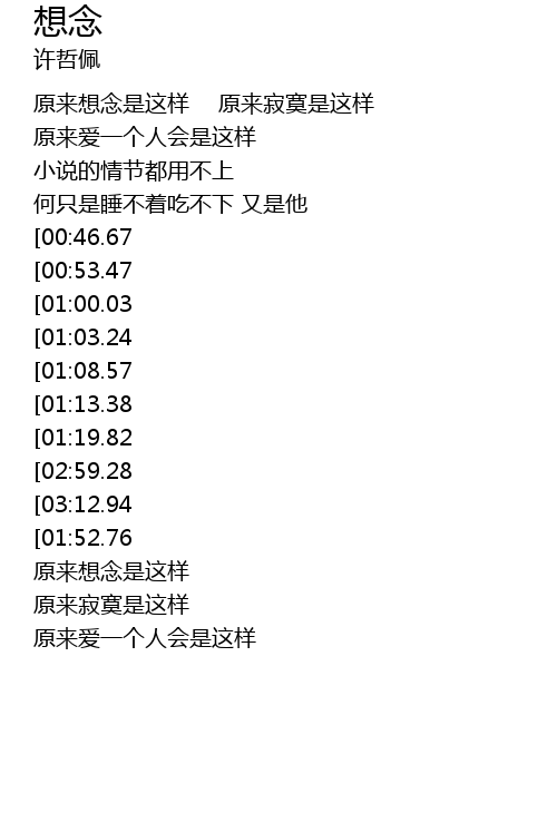 | [02:20.26][00:46.67] | 想念你说的话 想念你的模样 |
