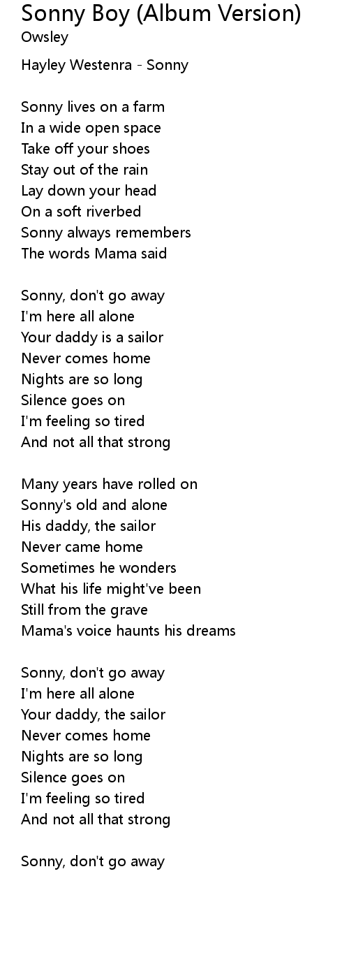 | Sonny, don't go away |