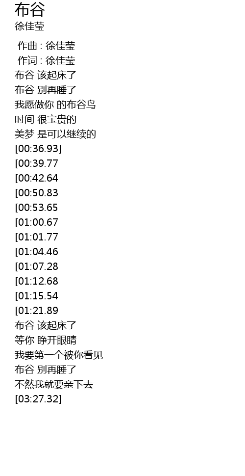 | [02:18.71][01:01.77] | 布谷 该起床了 |