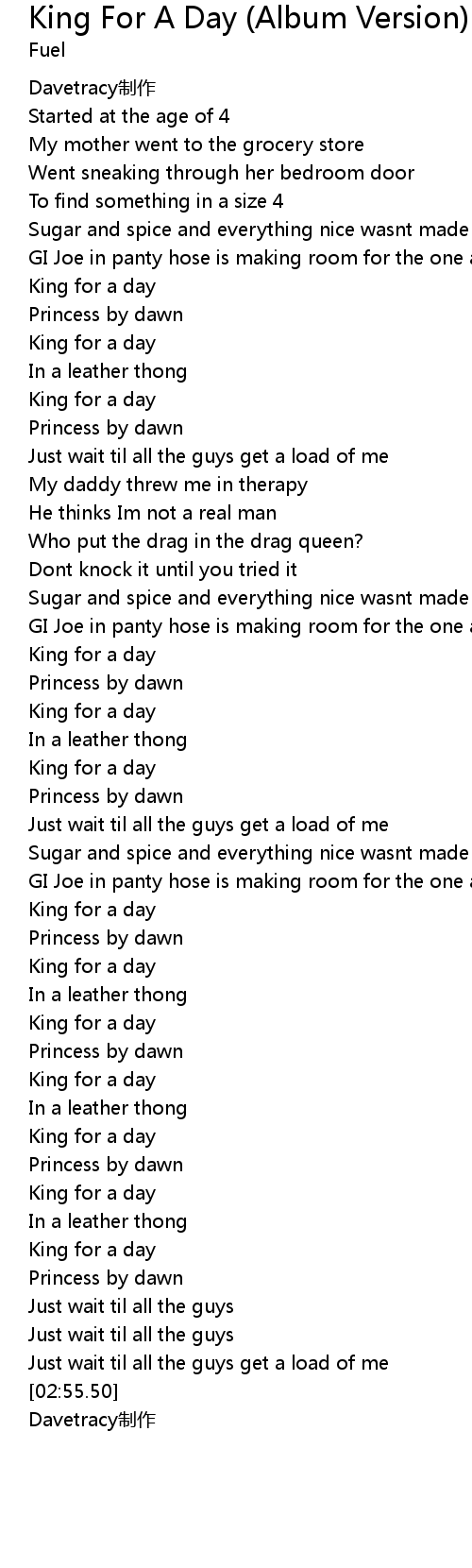 | [00:26.50] | GI Joe in panty hose is making room for the one and only |