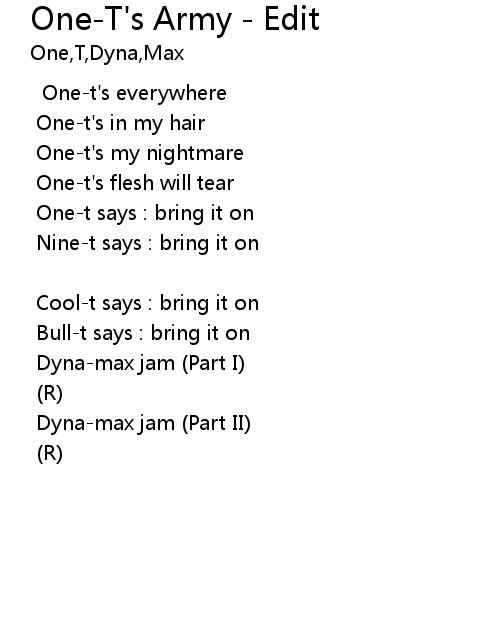 One-T's Army - Edit Lyrics