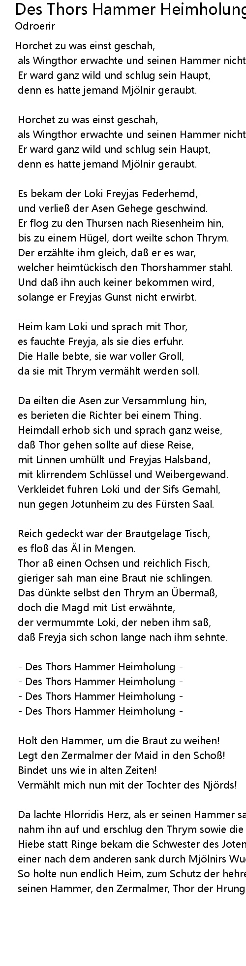 | nahm ihn auf und erschlug den Thrym sowie die ganze Riesenschar. | |