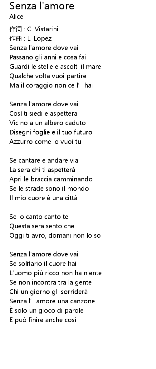 | Senza l’amore una canzone | |