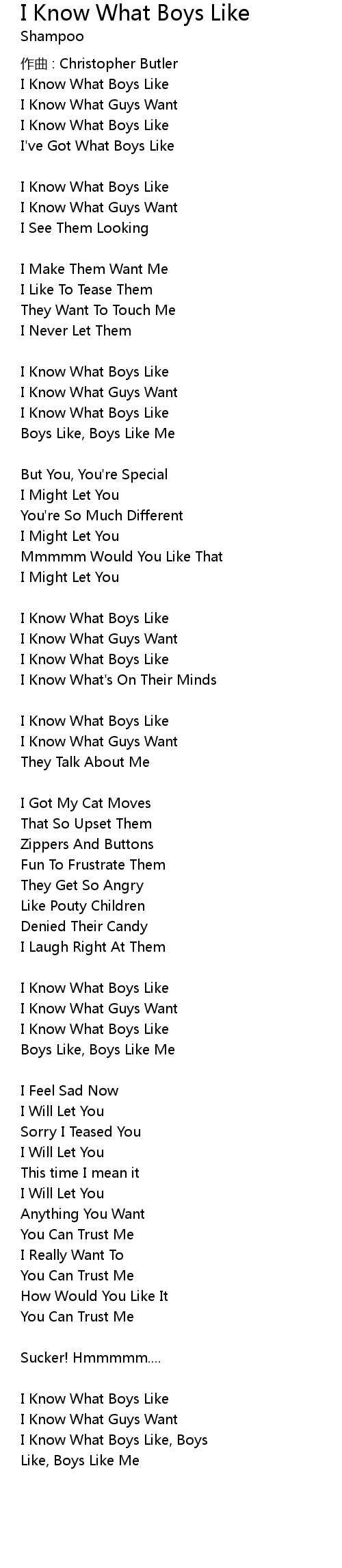 | I Know What Boys Like, Boys | |