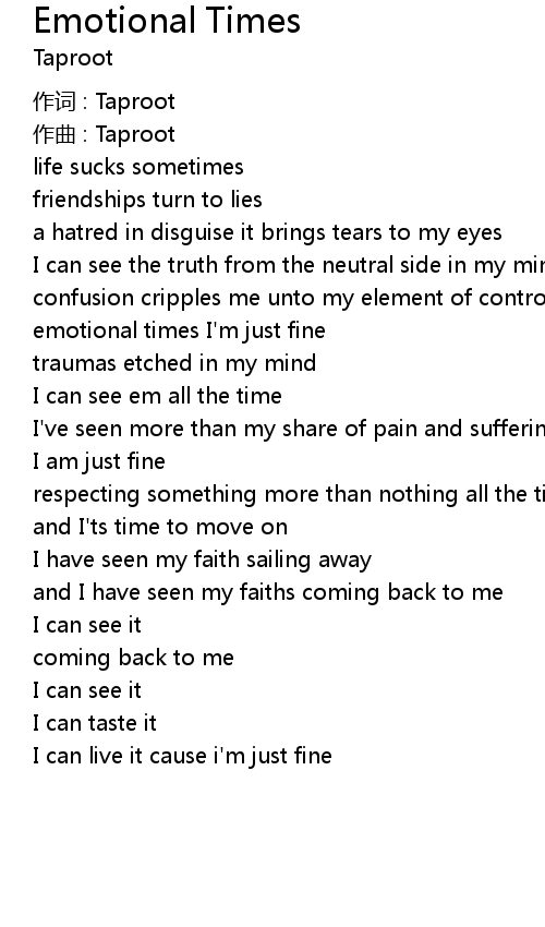 | emotional times I' m just fine | |
