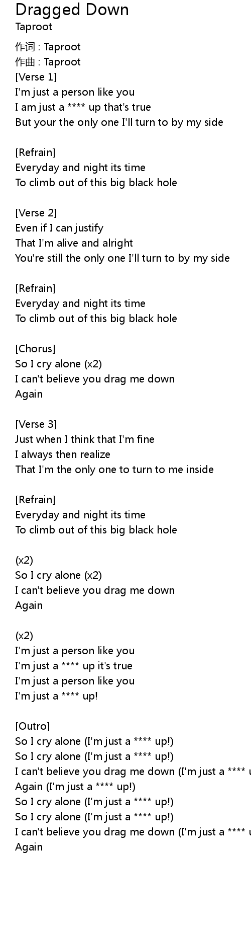 | I can't believe you drag me down (I'm just a **** up!) | |