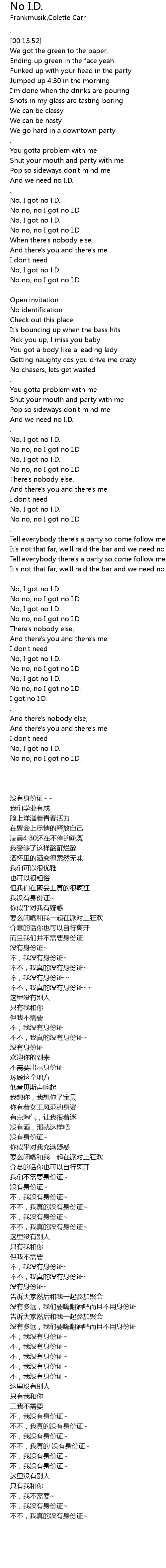 No, I got no I.D. |