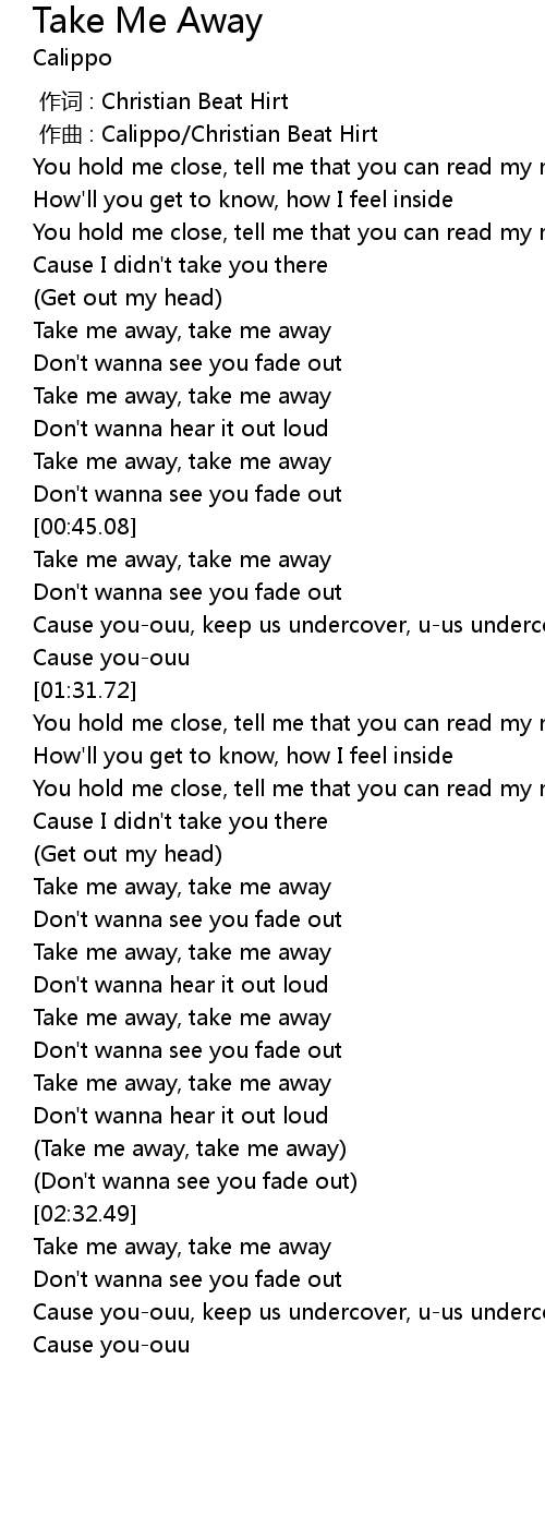 | [03:06.23] | Cause you-ouu, keep us undercover, u-us undercover |