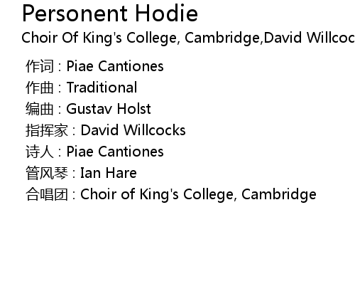 | [00:00.000] | 合唱团 : Choir of King's College, Cambridge |