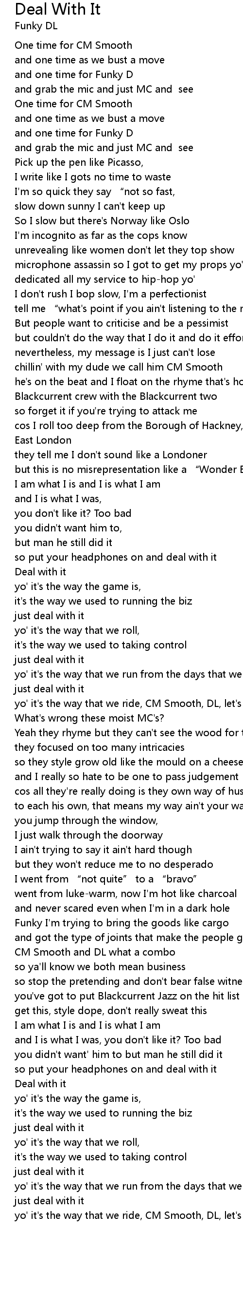 | [00:54.74] | chillin' with my dude we call him CM Smooth |