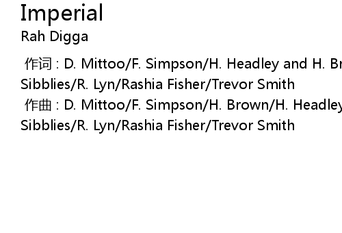| [00:00.000] | 作词 : D. Mittoo/F. Simpson/H. Headley and H. Brown/L. Ferguson/L. Sibblies/R. Lyn/Rashia Fisher/Trevor Smith |