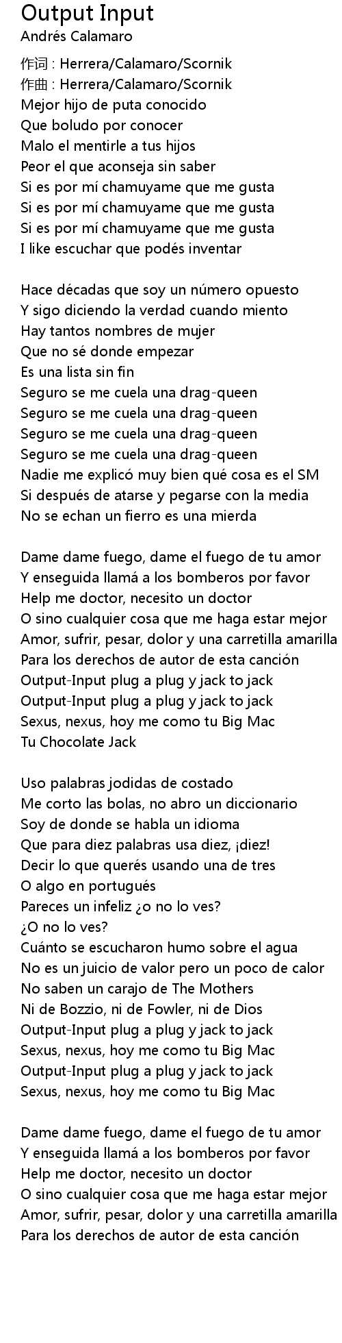 | 作词 : Herrera/Calamaro/Scornik | |