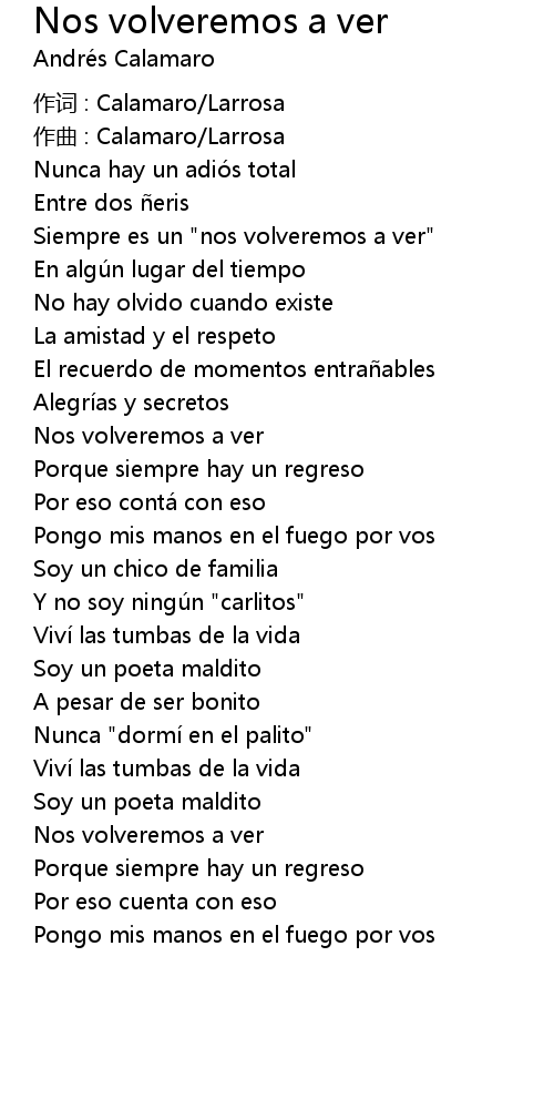 | Song | Nos volveremos a ver |